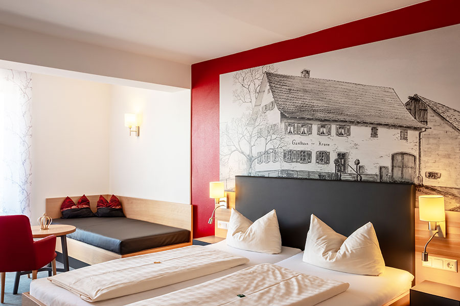 Unser Hotel befindet sich seit 1907 in Familienbesitz und bietet Ihnen nach mehreren Renovierungen in den letzten Jahren moderne und gemütliche Komfort- und Standardzimmer. Südlich vom Haupthaus erstreckt sich die Liegewiese mit angrenzendem Gästehaus. ⇒ 360° Rundgang