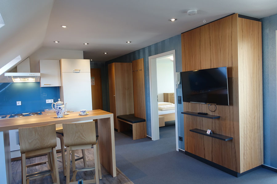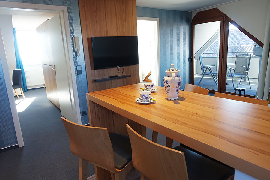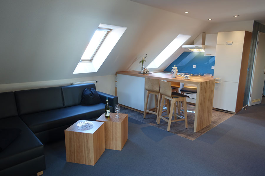 Unser 3-Zimmer-Appartement im Dachgeschoß (Haupthaus) verfügt über Klimaanlage, Dusche/WC, Fön, Kühlschrank, Microwelle, Kaffeemaschine, Wasserkocher, Safe, 2x SAT-TV, Balkon mit See- und Bergsicht, Wohn-, Schlaf-, Kinderzimmer und Küchenbereich hat eine Wohnfläche von ca. 70 qm und ist für bis zu 4 Personen geeignet. ⇒ 360° Rundgang