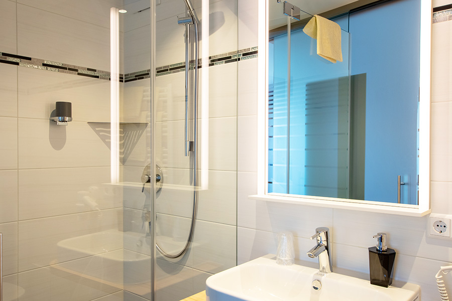 Unsere Komfort-Doppelzimmer mit Balkon verfügen über Dusche/WC, Fön, Kühlschrank, Safe und SAT-TV, teilweise mit See- und Bergsicht, haben eine Wohnfläche von ca. 25-30 qm und sind für 2-3 Personen geeignet. ⇒ 360° Rundgang
